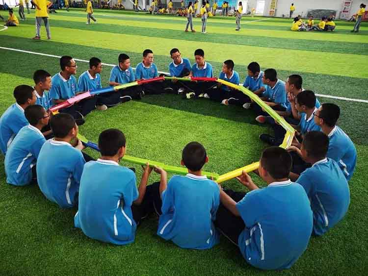 大家有兴趣可以一起进行一些互动游戏,如带球赛跑、二人三足、珠行万里、沙滩足球、拔河比赛;