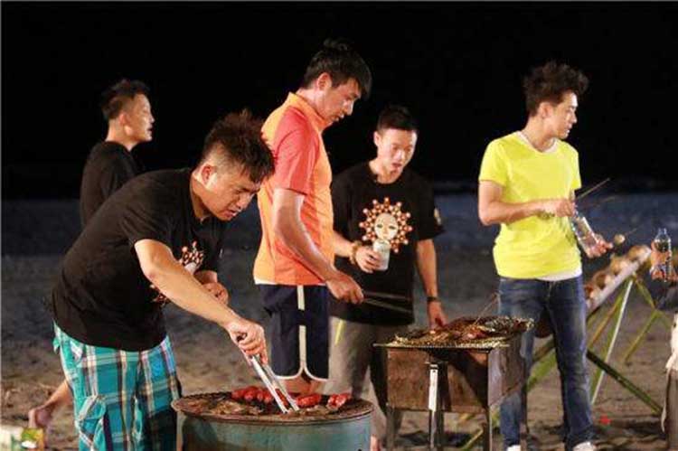 18:00于沙滩的烧烤场开始【DIY烧烤烧烤】(因团队烧烤的用量很大,食材均无法腌制,敬请理解),开始自己动手创造美食,有肥肥的鸡腿,有嫩嫩的鸡翅,有劲头十足的牛肉丸,还有火腿、茄子、青椒等,烧烤物资一应俱全,还等什么,一起来“自力更生”,喂饱自己的肚子吧!……在这浪漫的时刻和朋友分享美味,一边聊天,一边细细品位这份难得的悠闲,看着自己烤出来香喷喷的鸡腿,鸡翅,还有其它诱人的食物,是不是连口水都流出来了,坐下来享用烧烤大餐,体验自己动手的无穷乐趣。