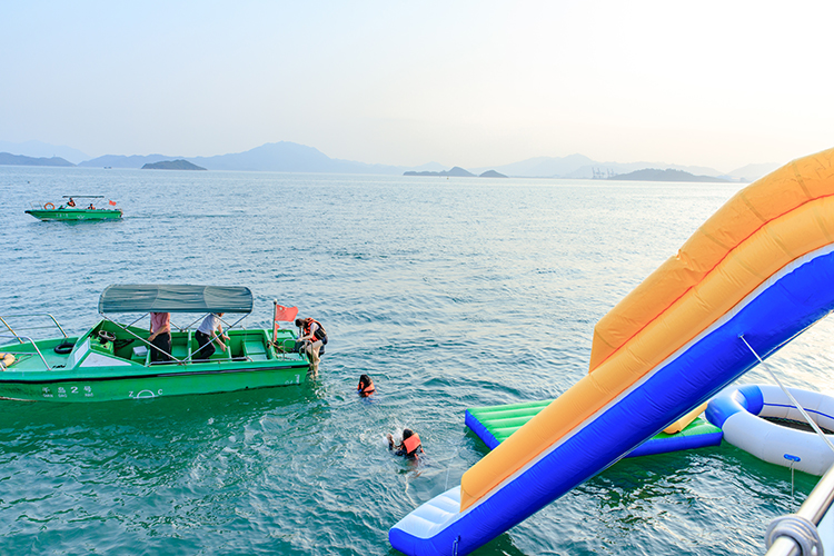 13:30抵达码头后开始【游艇海上观光娱乐】(巳含包船费用,时长约3小时),行驶半小时后停船2小时,游船上提供水果、小吃、矿泉水;停船后有KTV、水上滑梯、香蕉船、漂浮气垫任玩,也可以游水,免费提供游泳圈及淡水冲凉,让我们远离了生活在城市中的喧嚣,一起纵横驰骋大海,让阳光轻洒在你脸上,让海风吹拂您的长发,尽览海上美景,尽享海上休闲的美好浪漫生活!