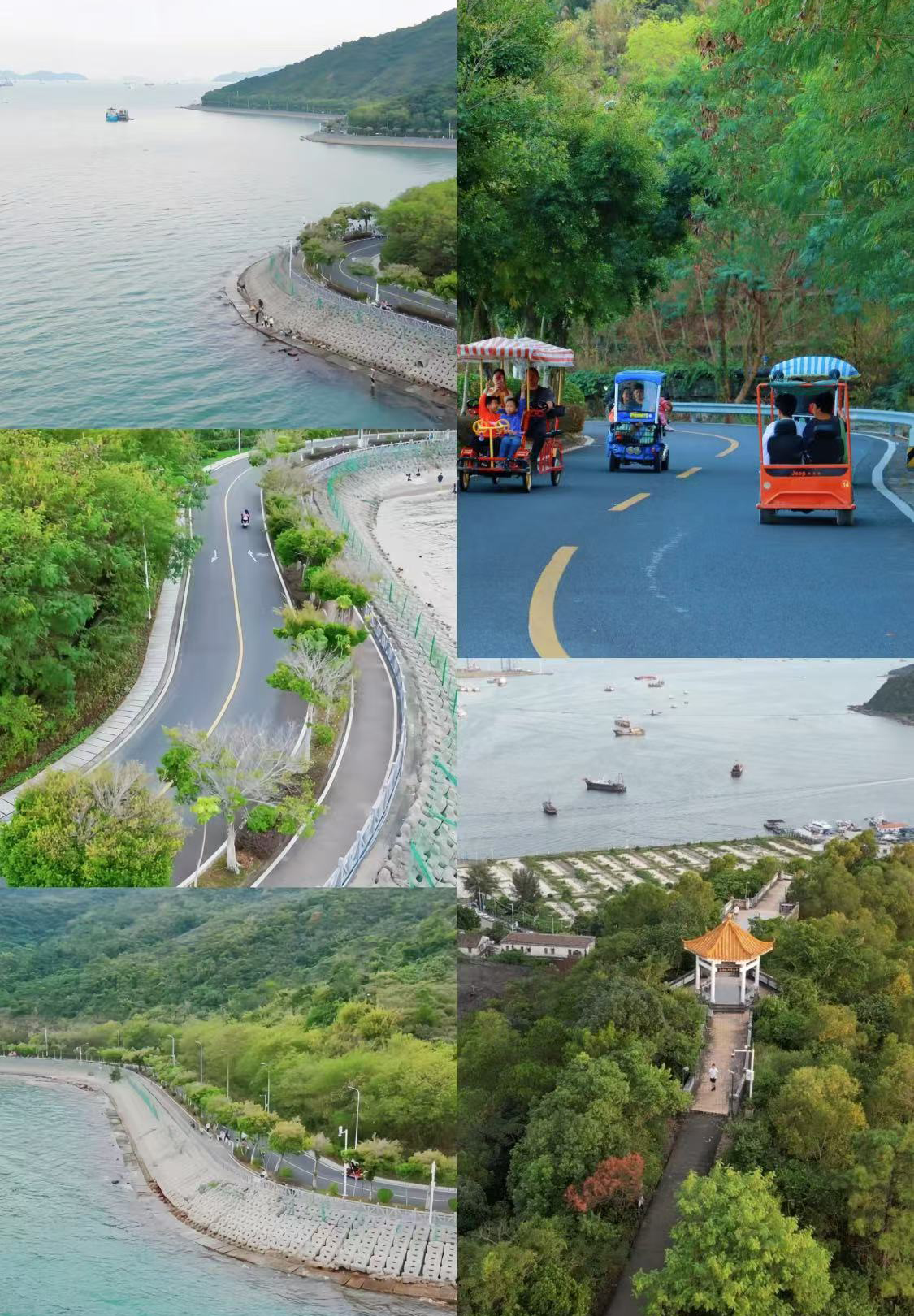 13:30集合开始【小桂绿道骑行】(巳含电动车租金, 四人一台车,如需其它车型需补租车差价),小桂绿道沿海岸线而建,全长约10公里,可欣赏蓝天、大海,山林的交融景观,贯穿澳头村、衙前村,小桂村,延伸到坝光边界,被誉为“大亚湾必骑路线”,团友们一起欢歌笑语,带着甜蜜,浪漫前行,欣赏无敌海景哦,海风飘动着柔软的黑发,那一袭裙裾迎风飞扬,美丽的面庞绽放迷人的笑靥!!