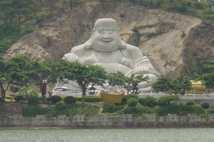 【弥勒佛】 它是根据五代后梁一位僧人形象塑造而成的,因他左手提着一个布袋,人们又称它布袋和尚,看到它,我就会想起那副对联:“腹大可容容天下难容之事,口阔以笑笑世上可笑之人”。愿各位朋友也每天能笑口常开,以一颗宽阔的心来面对生活,面对人生。