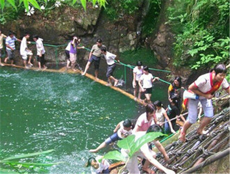 14:00参观【万绿谷风景区】:位于广东省河源市东源县回龙镇东星村万绿湖畔,原生态体验游览区隐逸于茫茫天子山脉中,连绵3.5公里,集俏、隐、幽、奇、险、古、拙于一体。游览区内奇峰怪石,美潭跌水、原始森林、古树奇花等塑造了千姿百态、异趣横生的、争奇斗艳的自然形态,显示了大自然鬼斧神工的杰作。以原生态自然景色为主导,使游客置身其中,深度参与和体验,释放原始野性、融入自然;途中可参与闯九关可锻炼到大家的集体精神