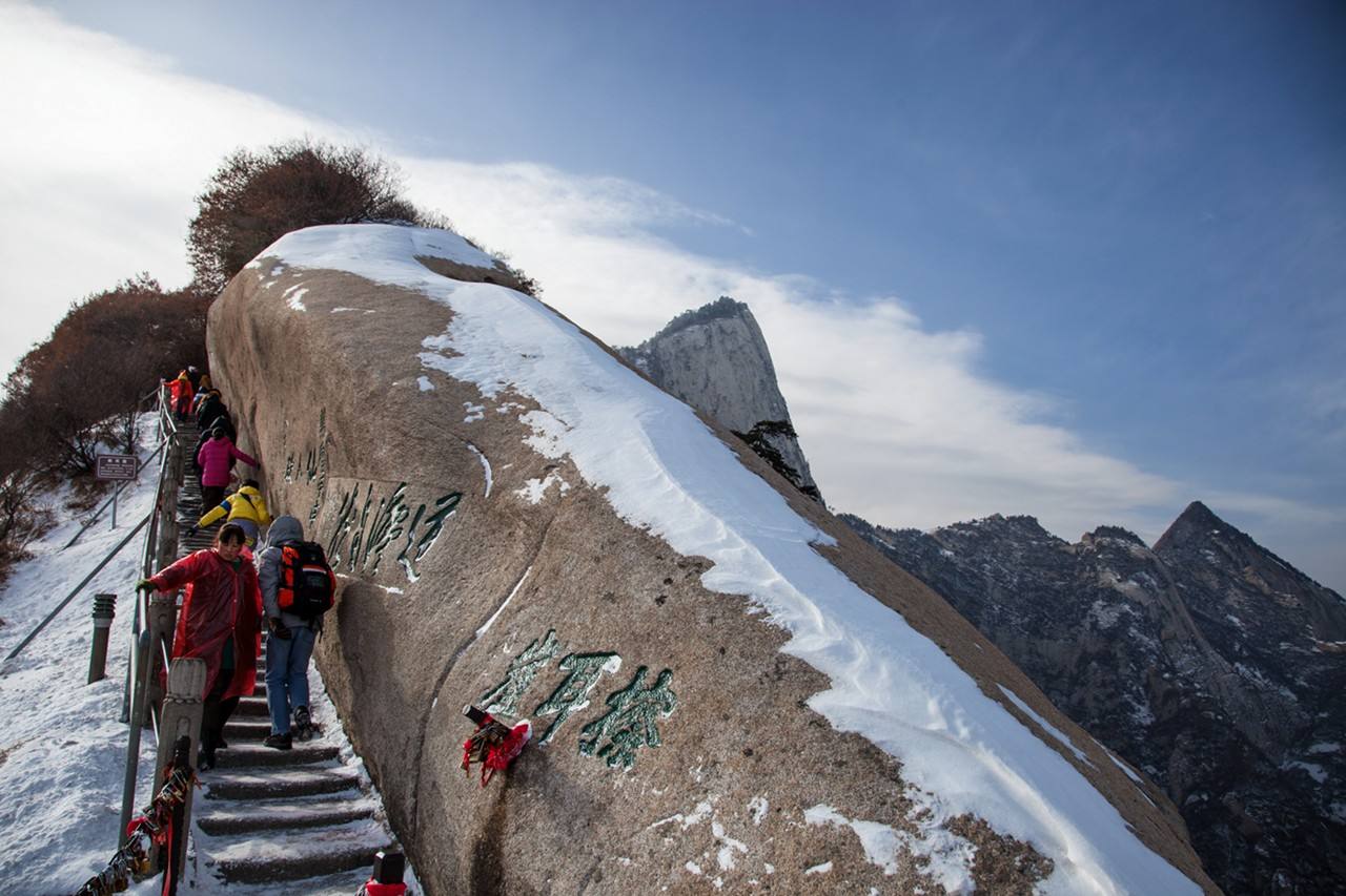 早餐后,前往游览中国著名的五岳之一【西岳华山】【游览约4小时,为保证华山充裕的游览时间,请自备午餐。含大门票,不含进山车及索道:因华山索道交通现有两条(北峰索道和西峰索道),所以索道交通将由客人根据个人喜好选择乘坐。有以下三种乘坐方式供游客选择:1、北峰往返进山车40元/人,索道150元/人。2、西峰往返进山车80元/人,索道280元/人。3、西峰上行北峰下行进山车60元/人,索道220元/人】,华山之险居五岳之首,有“华山自古一条路”的说法,华山奇峰耸立,绝壁巍峙,慑人魂魄,共有东、南、西、北、中,五峰环峙,雄奇险峻,高擎天空,远而望之状若一朵盛开的莲花,故名华山。华山山路奇险,景色秀丽,沿山路从【玉泉院】到【苍龙岭】可以看到许多胜景,从华山脚下到青坷坪,一路上风光幽静,山谷青翠,鸟语花香,流泉垂挂,令人心旷神怡。华山还是道教胜地,为“第四洞天”,山上现存七十二个半悬空洞,道观20余座。自隋唐以来,李白、杜甫等文人墨客咏华山的诗歌、碑记和游记不下千余篇,摩岩石刻多达上千处。山上著名景区多达210余处,有凌空架设的【长空栈道】,三面临空的【鹞子翻身】,以及在峭壁绝崖上凿出的【千尺幢】、【百尺峡】、【老君犁】沟等,后入住酒店。