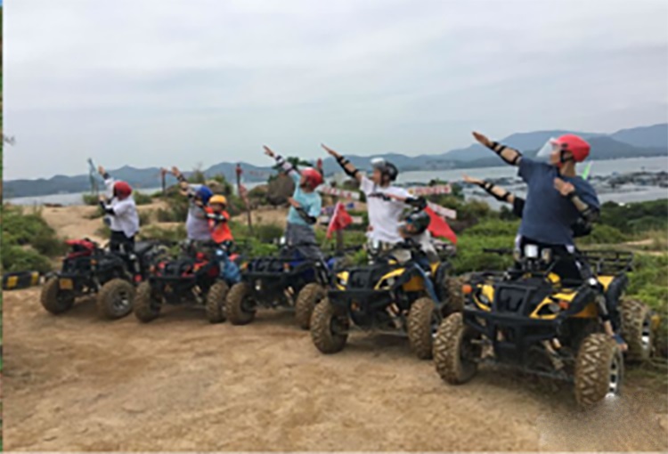 14:00集合开始体验【丛林里全地形越野车】(已含租车费,2人一台车跑四圈,时长约30分钟,基地共15台车),营地配备了最好玩的ATV越野车,来一场丛林里ATV全地形车竞赛,越过地球表面,燃烧你的小宇宙、肾上腺飙升的些许轻狂,开始荒野镖客似的冲动、给你欲罢不能的奔放,每个人的血液中,都有一种被期待被点燃的激情,只不过,城市里,从没有这样的释放!!