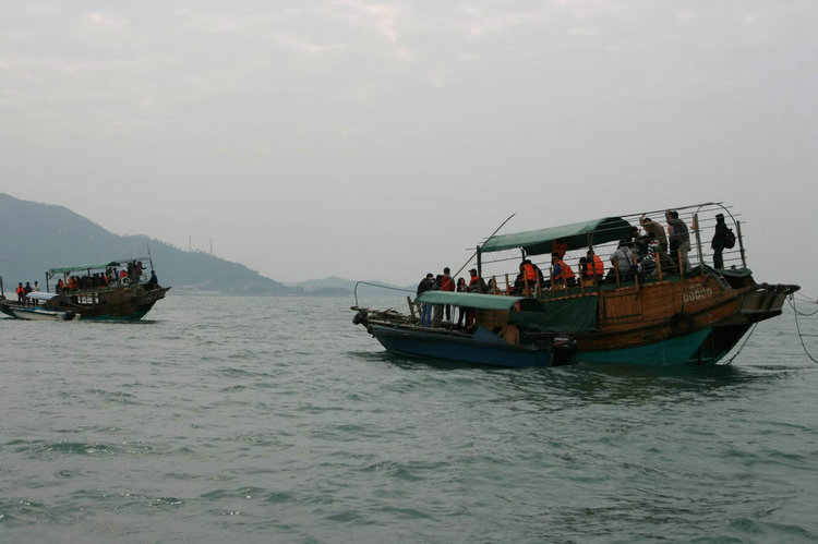10:30抵达双月湾码头后乘船【出海捕鱼】(已含渔船租金,游览约1小时,如遇暴风雨或禁渔检查,此项目自行停止),大家在渔民的带领下,登船出海,畅游百岛风情、观海上风光,亲身感受捕鱼的乐趣,尽享人欢鱼跃的欢乐气氛,一定会有不少收获,满足一下DIY捞鱼捞虾的好奇,目的不在于多少,而在于自己亲自出马、参与捕捞的全过程特写,捕鱼所得团友可带回餐厅自费加工。