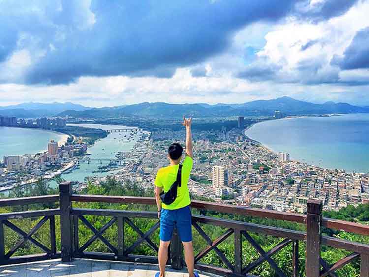 10:30 抵达双月湾观景台,下车需步行30分钟前往双月湾观景台(免费景点,,游览约1.5小时),双月湾由大亚湾和红海湾畔相邻的两个半月形海湾组成,两条沙垅直奔大星山,如蛟龙出海,似双龙戏珠,有静有动,十分壮丽,大亚湾畔的半月湾,微风细浪,阿娜多姿。红海湾畔的半月湾,波涛汹涌,气势磅薄。这里三面环海,风景如画。洁白的沙滩,黛绿的林带,碧蓝的大海,多姿的礁石,迷人的小岛,穿梭的渔舟,构成了动静交融的南海渔港风光。