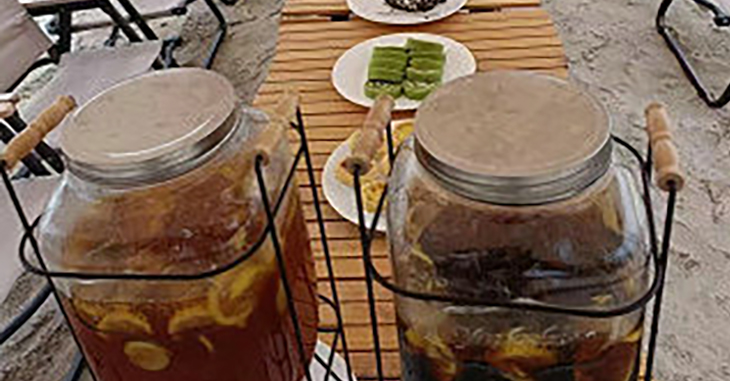 15:30入住帐篷后,在沙滩天幕下品尝下午茶(天幕配置:椅子×2个、桌子、电烤炉、烧水壶、茶具;下午茶套餐:饮品、蛋糕、水果),享受惬意的午后时光,感受绚丽的黄昏晚霞...